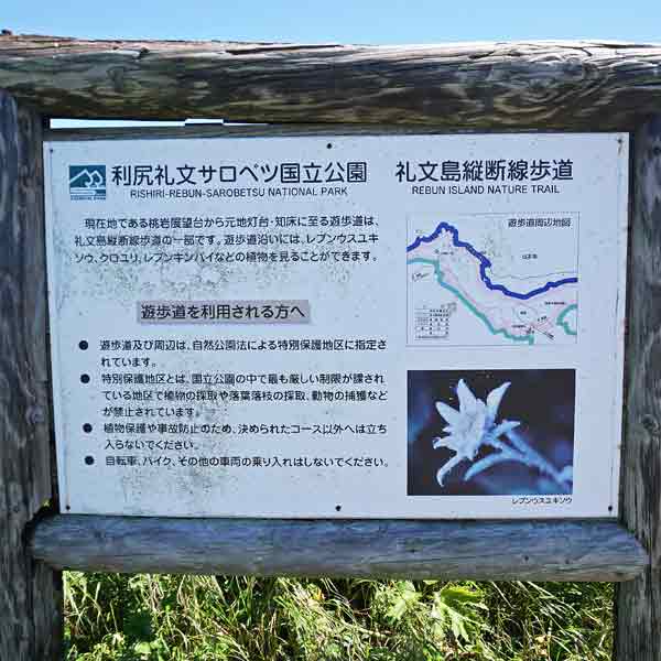 | 注意事項 | 看板<花の採取禁止/トレッキングルールなど> |