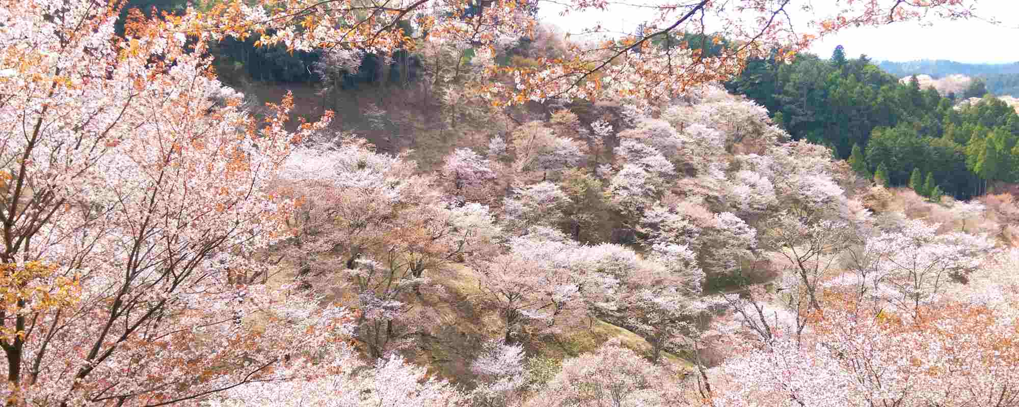 日本屈指の桜の名所。桜を御神木とする金峯山寺への献木が広がる。歴史に度々登場する山。
