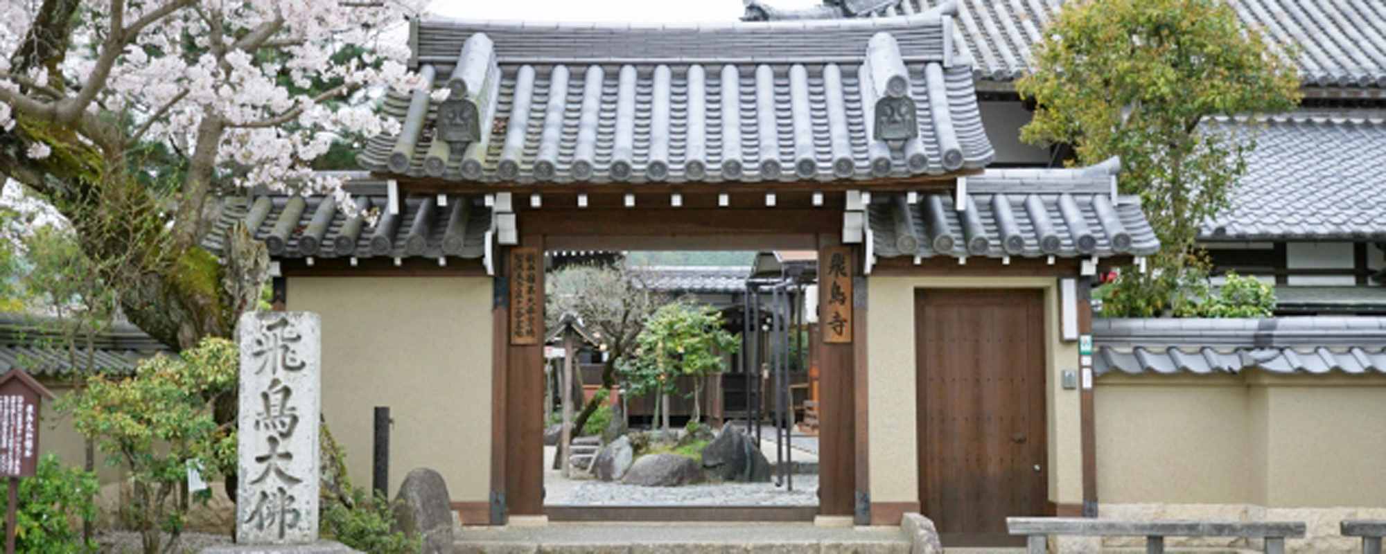 真言宗豊山派、日本初の本格的な寺院。平城遷都に伴い移転。跡地は飛鳥大仏が鎮座する。